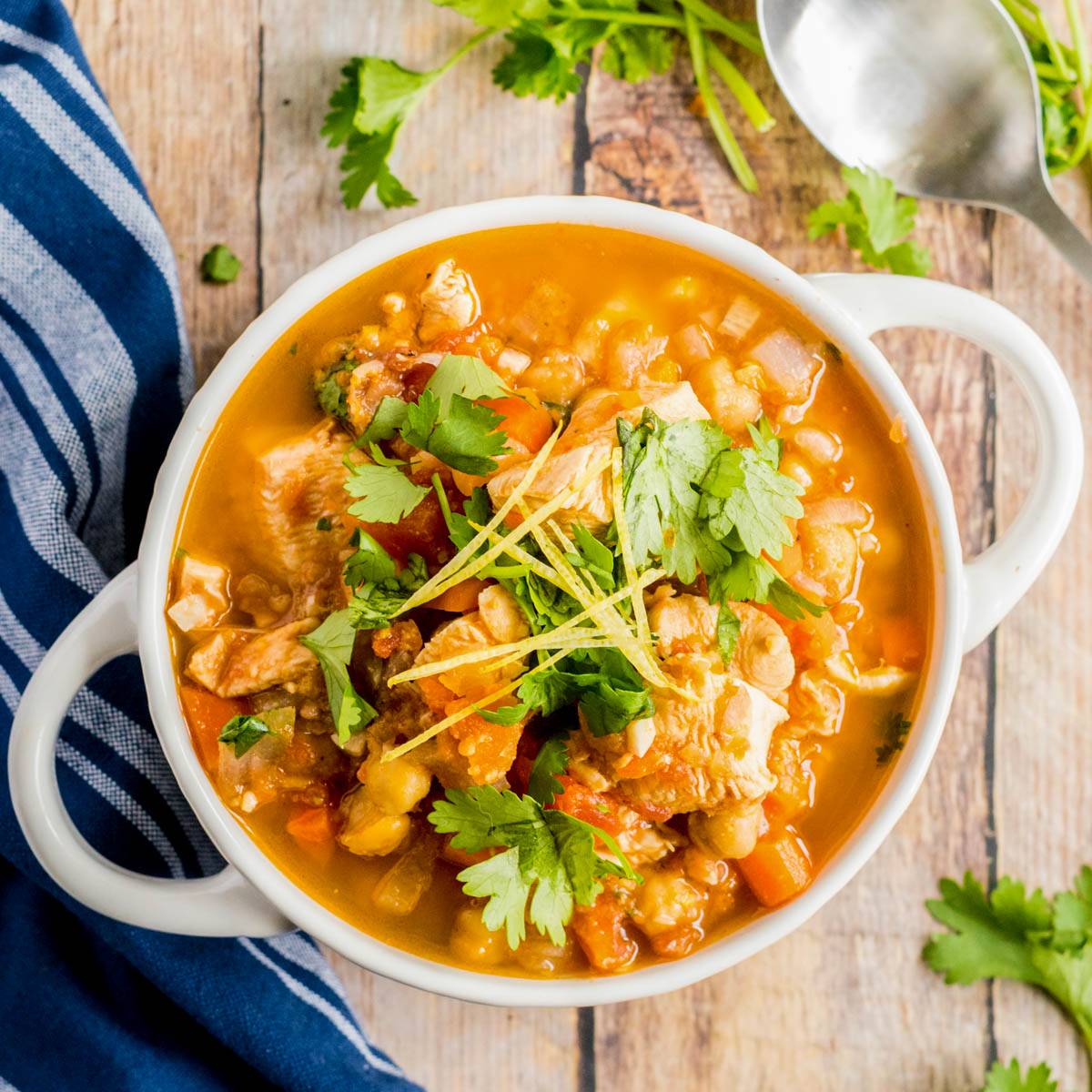 Spiced with cinnamon, cumin, and paprika, this chicken stew is cozy with a hint of heat. Add chickpeas or extra veggies to make it your own.
